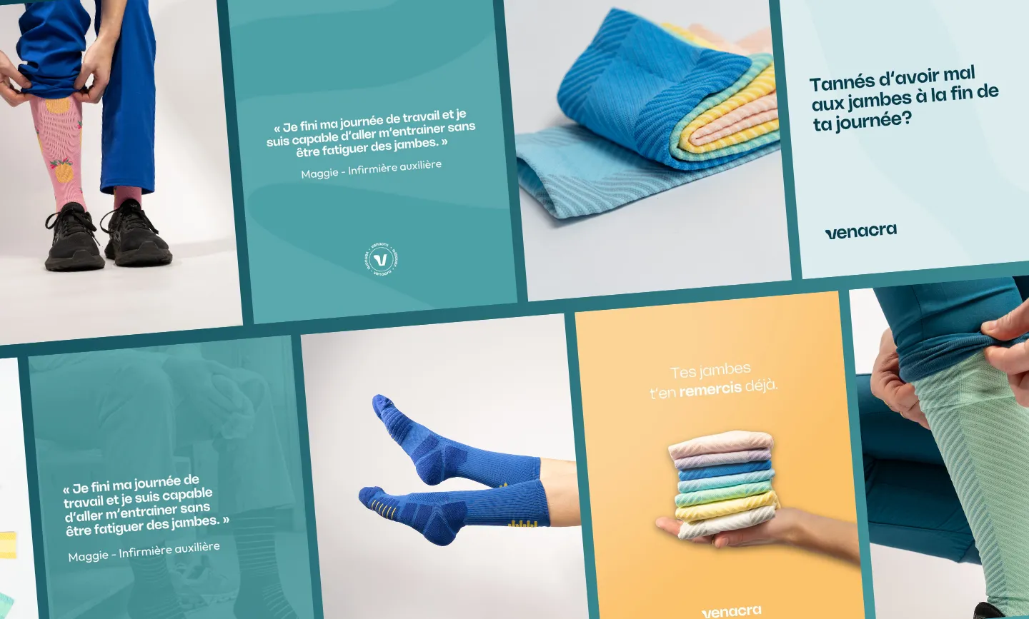 Venacra est une marque québécoise de bas de compression créée pour allier confort, esthétique et accessibilité. Son objectif est de bâtir une communauté engagée tout en structurant une présence numérique professionnelle et cohérante.